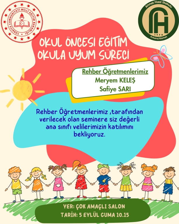 Rehber Öğretmenlerimiz Meryem KELEŞ ve Safiye SARI, tarafından verilecek olan seminere siz değerli ana sınıfı velilerimizin katılımını bekliyoruz.